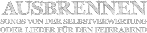 Ausbrennen - Songs von der Selbstverwertung oder Melodien für den Feierabend ist Konzert, Live-Hörspiel und Performance, ist ein Ringen um den Feierabend für brennende und ausgebrannte EinzelkämpferInnen, ist der Versuch eines neuen Arbeiterlieds. Musik! Musik!